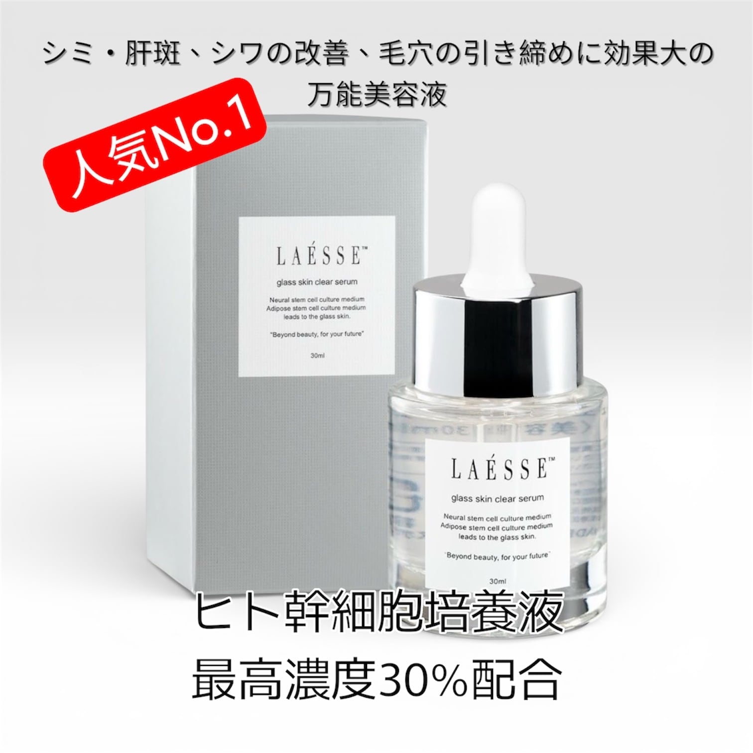LAESSEの中でも最もヒト幹細胞培養液高配合のセラム。迷われたらコチラをお使いください。